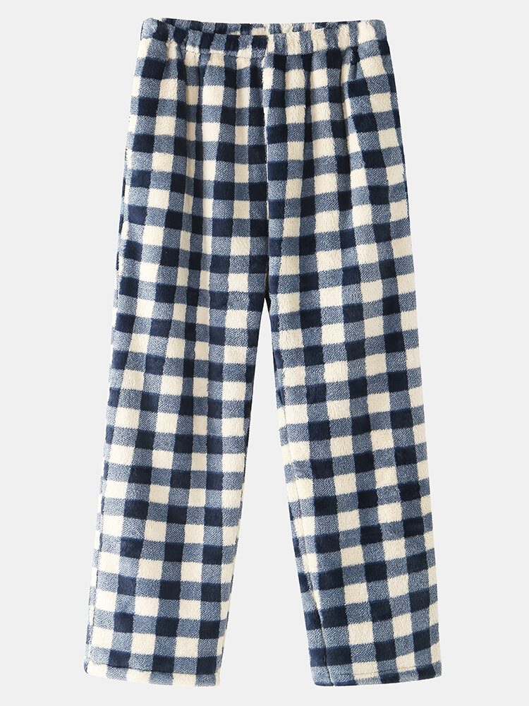 Herre Rutete Flanell Tykkere Varm Elastisk Midje Hjemme Sovebunn Med Lomme