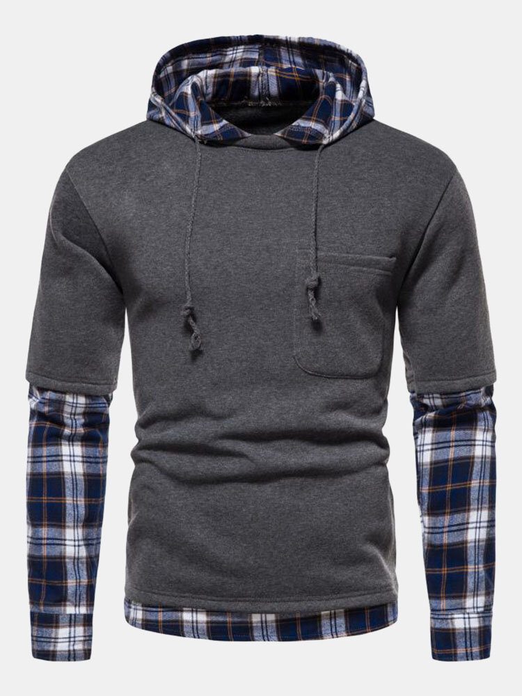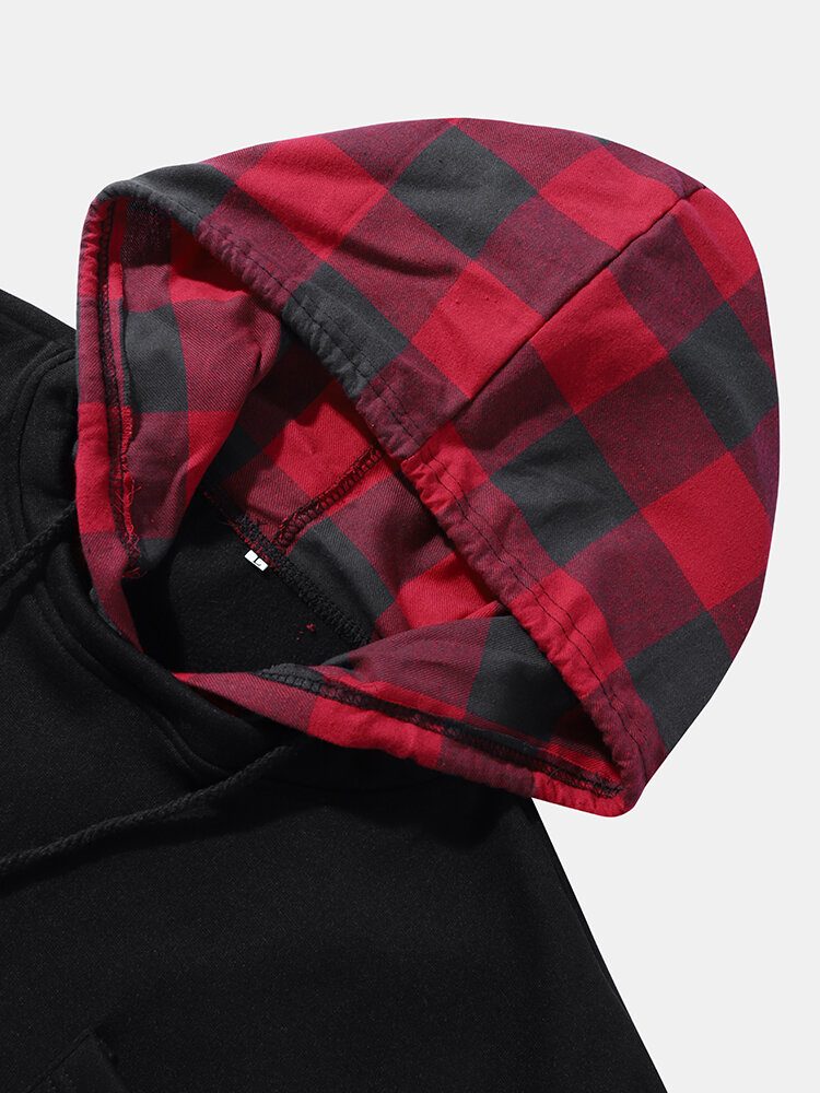 Herre Skjøter Pledd Forfalskninger Genser Med To Kontrastlommer Med Hette