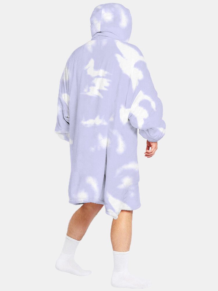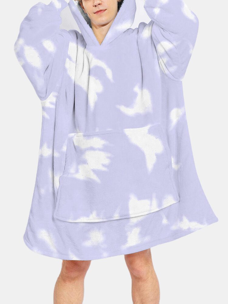 Herre Tie-dye Print Fleeceforet Tykt Løst Teppe Hettegenser Med Kengurulomme