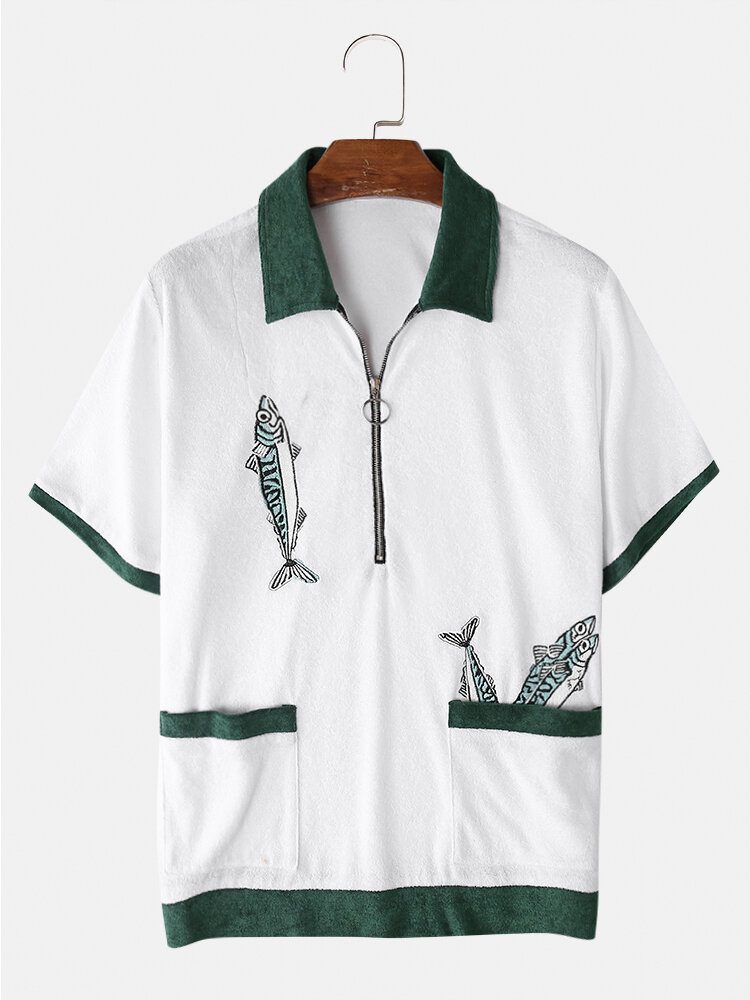 Herrefrotté Fiskebroderi Cabana-skjorter Med Halv Glidelås