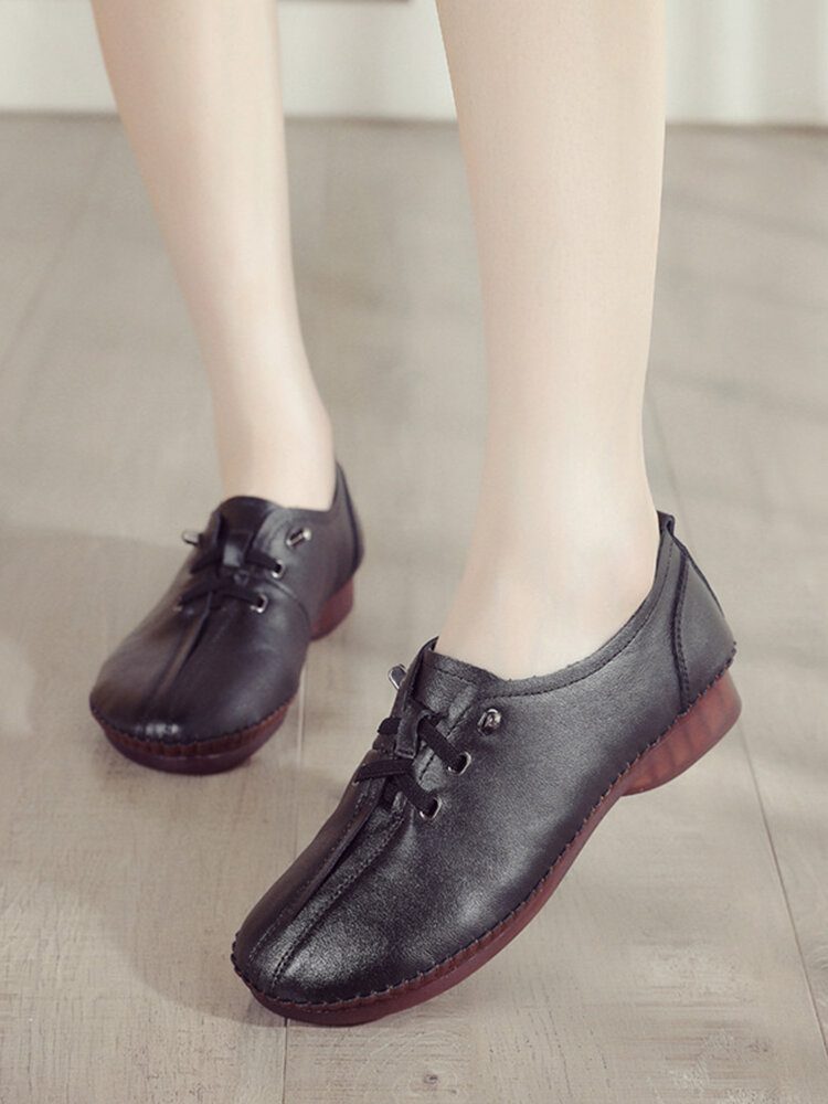Komfortabel Søm For Kvinner I Ekte Skinn Mykt Snøring Flate Loafters