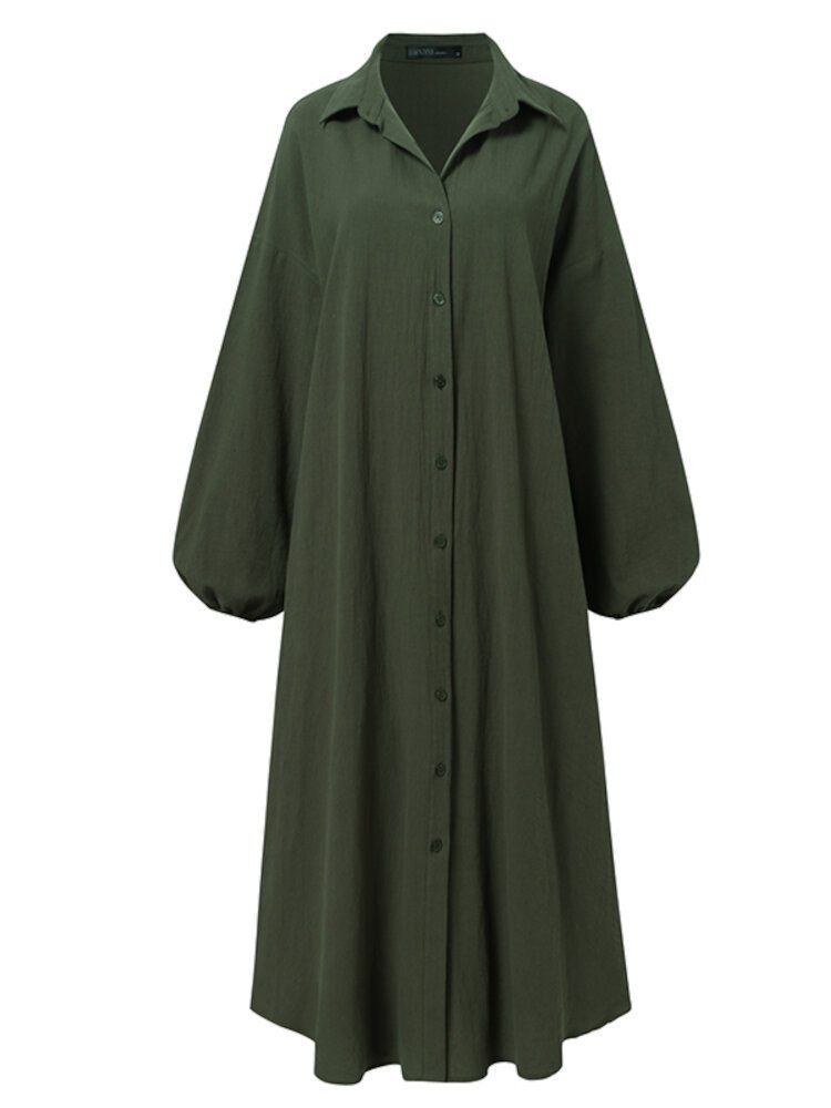 Kvinner 100% Bomull Kalvlengde Knapp Uregelmessig Fald Uformelle Midi-kjoler
