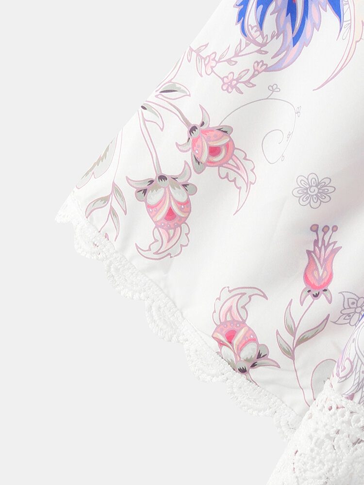 Kvinner Blomstertrykk Stikkslips Foran 3/4-ermet Blondekjoler