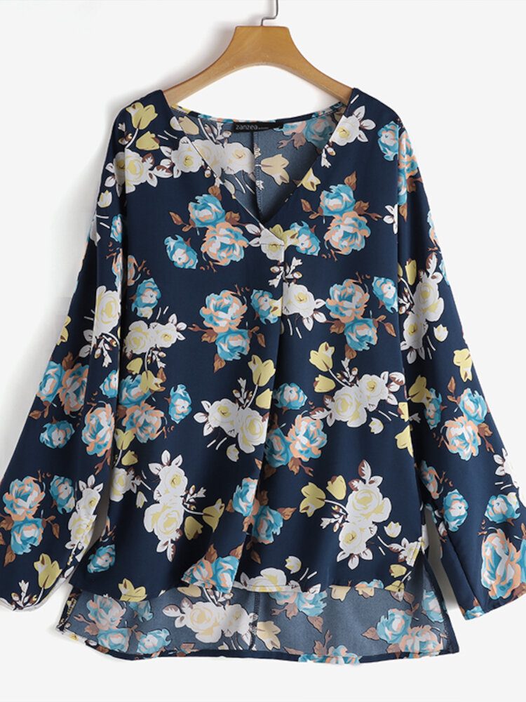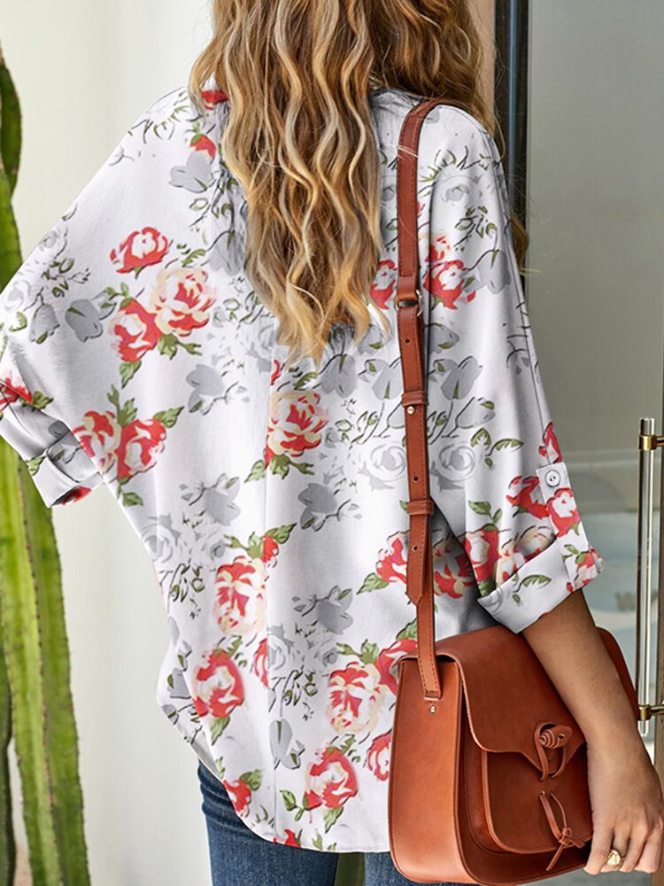 Kvinner Bohemsk Blomstertrykt Knappemansjetter V-hals Skjorter Med Justerbare Ermer