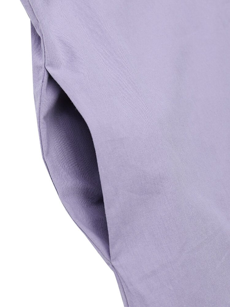 Kvinner Bomull Med O-hals Sidelomme Knapp Med Kort Ermet Vanlig Solid Casual Maxikjole