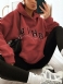 Kvinner Brevtrykk Fløyels Kangurulomme Tverrgrense Varm Langermet Hettegenser