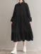 Kvinner Corduroy Casuallace-up Volanger Hem Løse Helermer Midi-kjole Lang Midi