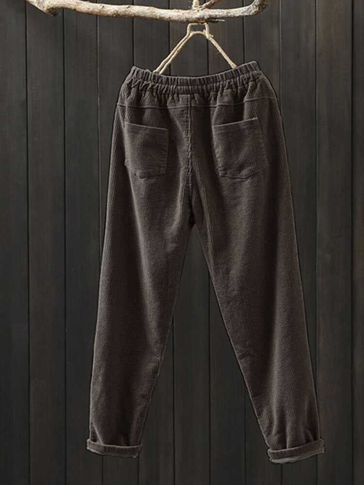 Kvinner Corduroy Solid Enkel Vintage Snøring Elastisk Midjebukser