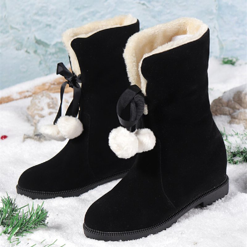 Kvinner Ensfarge Uformell Elegant Pompom Bowknot Varme Lo Flensende Snøstøvler