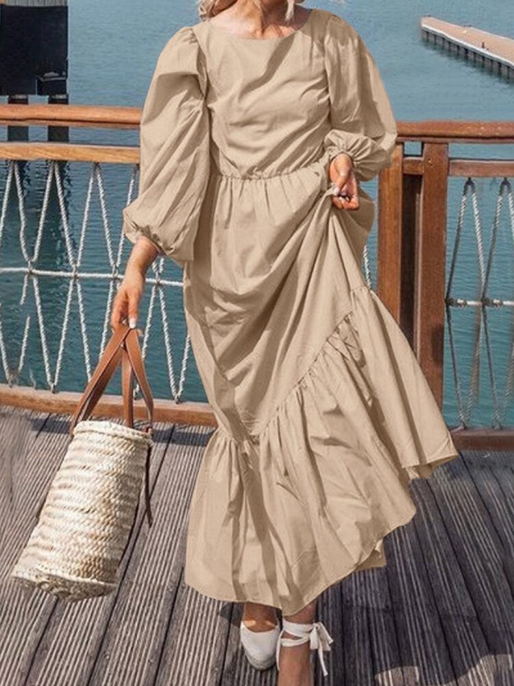 Kvinner Ensfargede Plisseringer Puffermer Ankellengde Maxikjoler