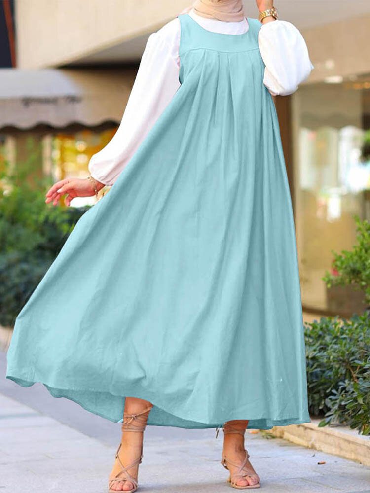 Kvinner Ermeløs Ensfarge Belted A-line Casual Løs Slip Maxikjole