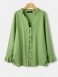 Kvinner Grønn Ruffle Trim Langermet Snøring Button Casual Bluse