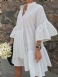 Kvinner Hollow Out Uregelmessig Ruffle Hem Stativ Krage Løs Minikjole