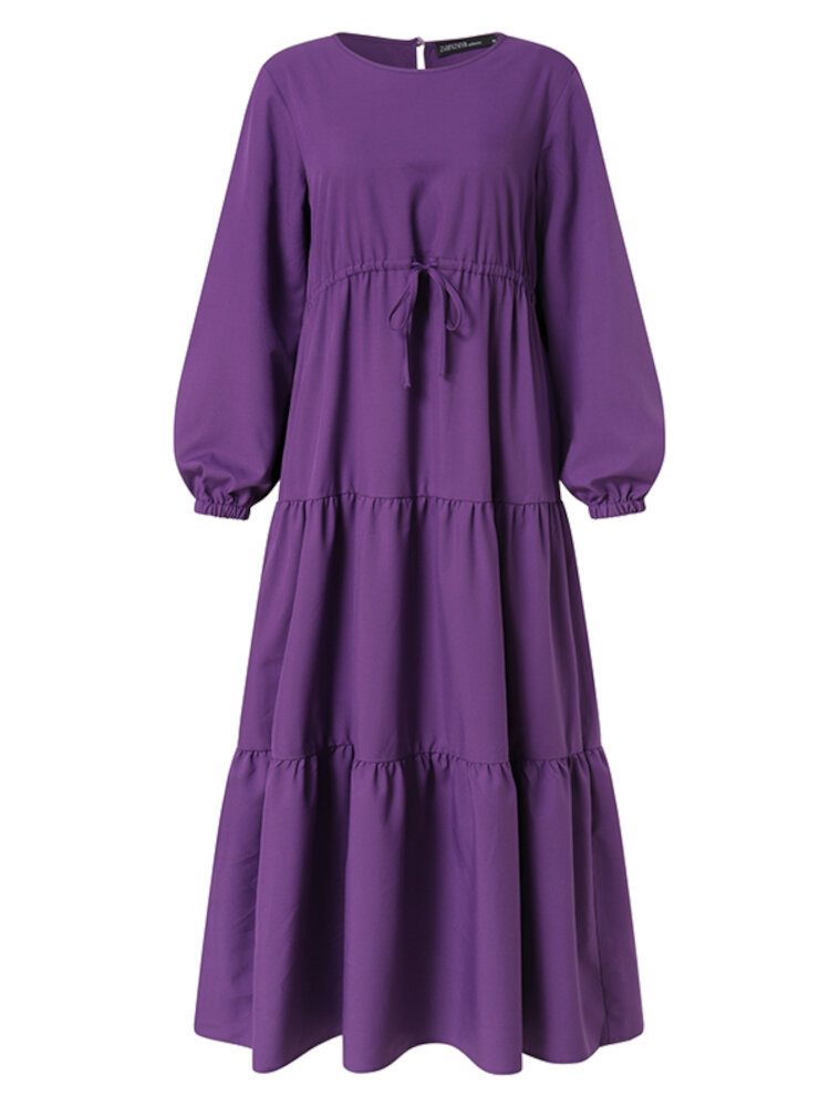 Kvinner Langermet Knapper Bak Kaftan Tunika Ensfarget Elastisk Mansjett Snøring Midi Midi Kjoler