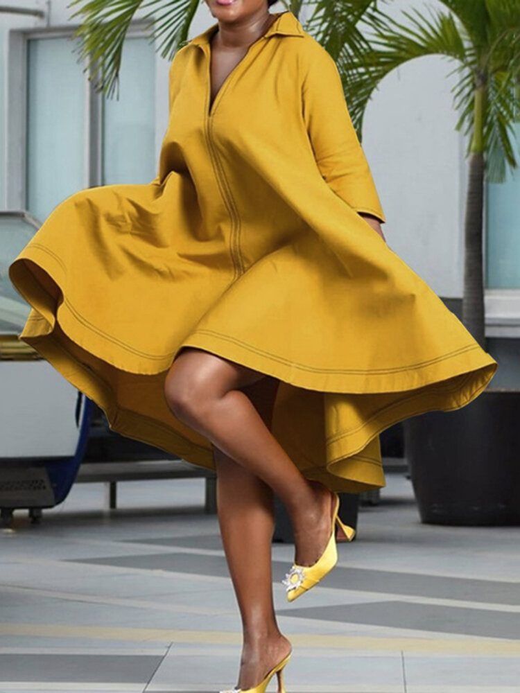 Kvinner Lapel Solid Uformell Stilig Loose Fit Dagskjole Med Sidelommer