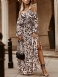 Kvinner Leopard Off Shoulder Lår Splitt Uformelt Langermet Maxikjoler