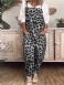 Kvinner Leopardtrykt Firkantet Hals Snøring Ermeløse Ankellengde Jumpsuits