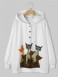 Kvinner Multi Cartoon Cat Printed Long Sleeve Cute White Hettegensere