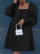 Kvinner Pure Color Firkantet Krage Lammearmer Uformelle Plisserte Minikjoler