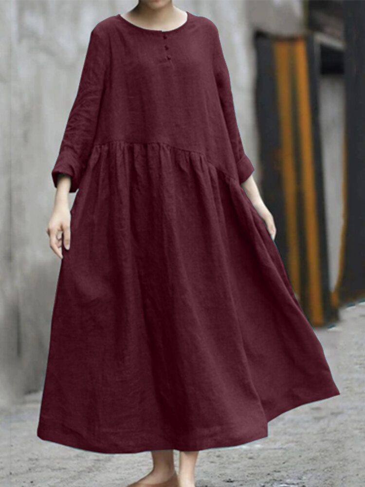 Kvinner Solid O-hals Uregelmessige Knapper Foran Uformell Kjole Med Sidelommer