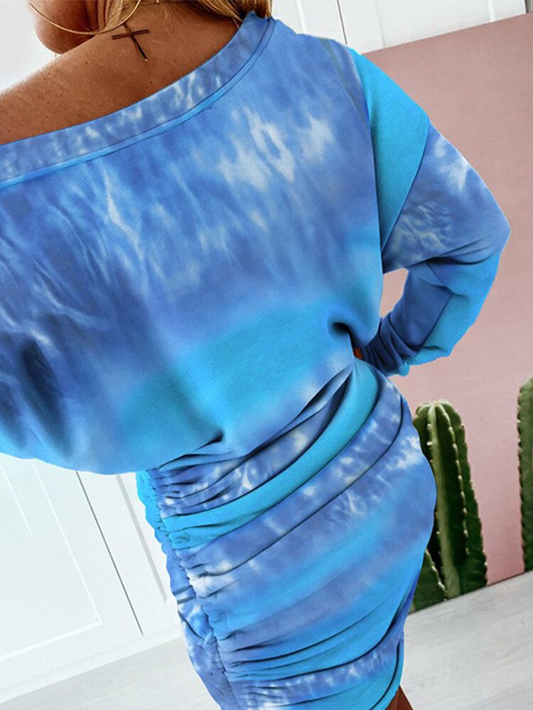 Kvinner Tie-dye Print Off Shoulder Snøring Hem Langermet Kjole