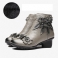 Kvinner Vintage Ekte Skinn Håndlaget Blomst Lav Hæl Ankel Korte Støvletter