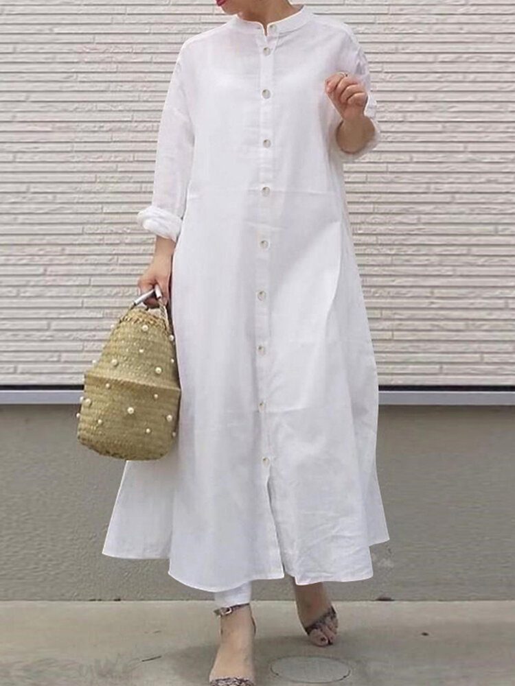 Langermet Skjortekjoler For Kvinner Ensfarget Knappemansjetter Legglengde Uformelle Midikjoler