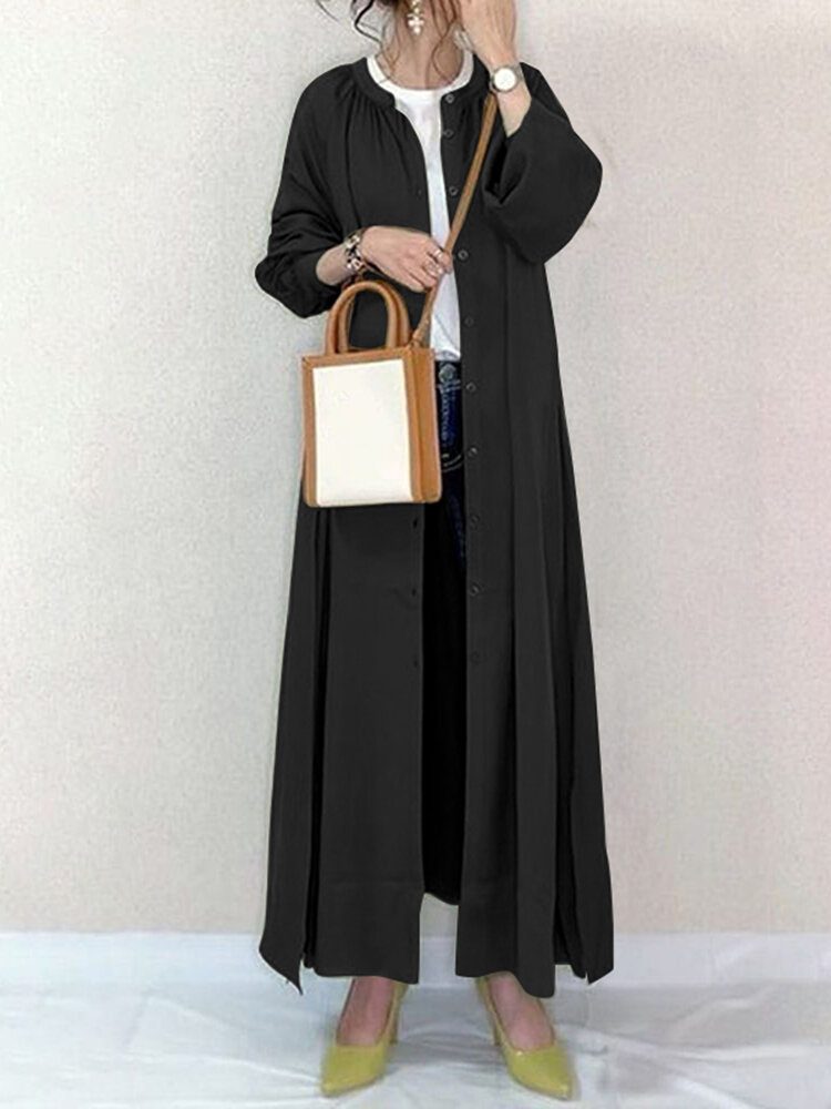Løse Skjorteknapper For Kvinner Solid O-hals Legglange Midikjoler