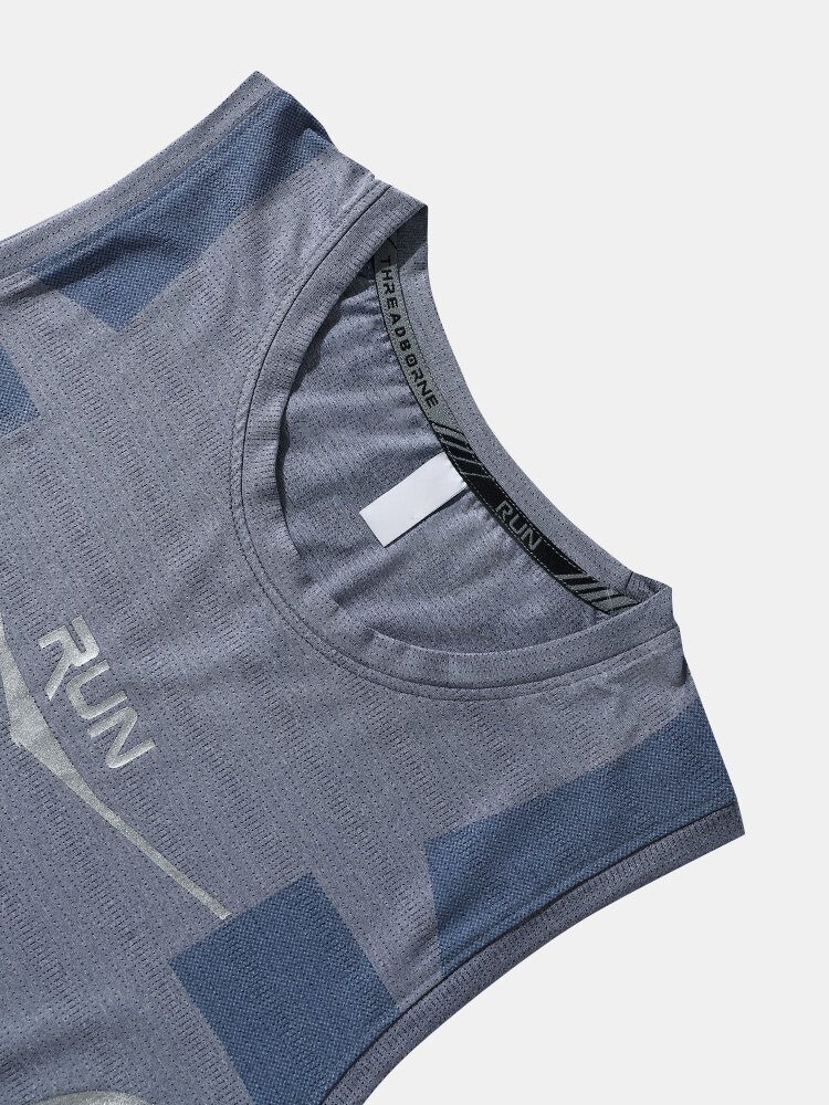 Menn Colorblock Sports Pustende Quick Dry Ermeløs Activewear-overdeler Med O-hals