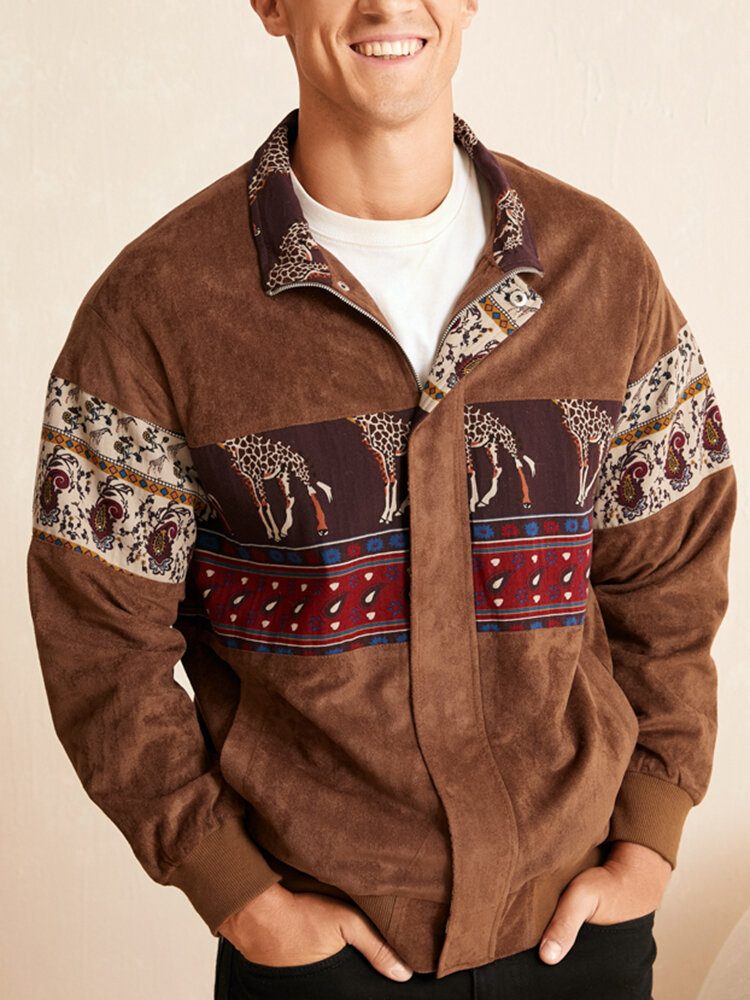 Menn Etnisk Dyr Paisley Print Patchwork Glidelås Imitert Semsket Skinnjakker