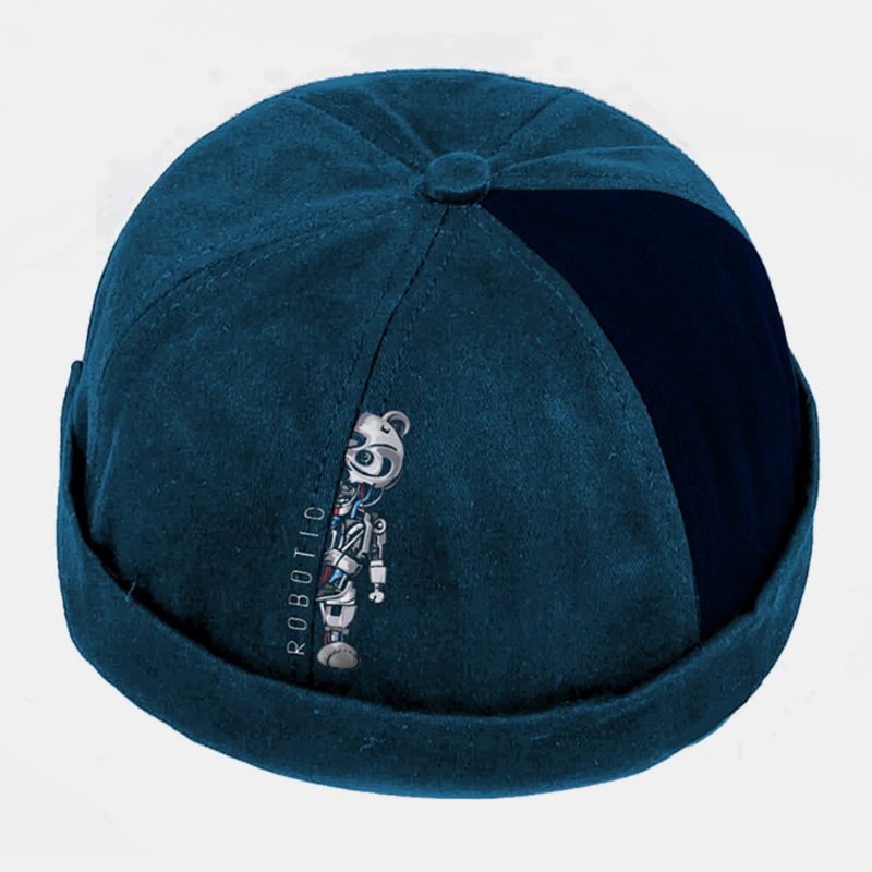Menn Kvinner Bomull Robot Bjørn Utskrift Patchwork Kreativ Mote Street Trend Brimless Beanie Utleier Cap Skull Cap