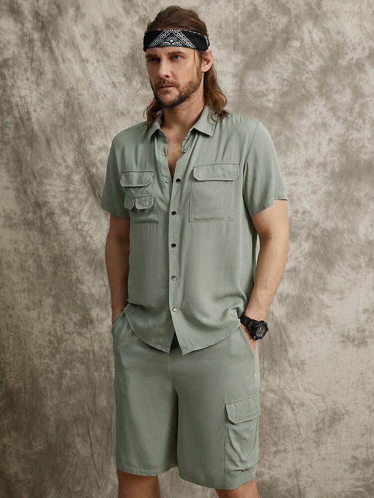 Menn Multi Pocket Tiered Designet Hem Cuff Frontknapper Street Cargo Drakter