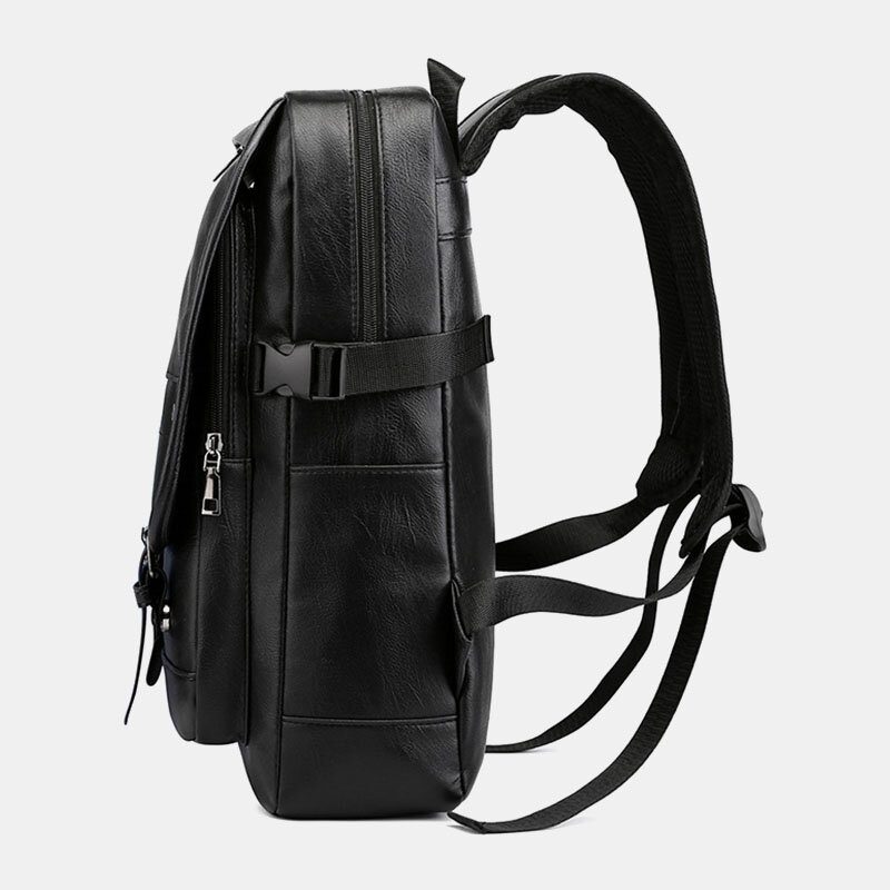 Menn Pu-skinn Ryggsekk Med Flere Lommer Uformell Reise Laptopveske Med Stor Kapasitet Skulderveske