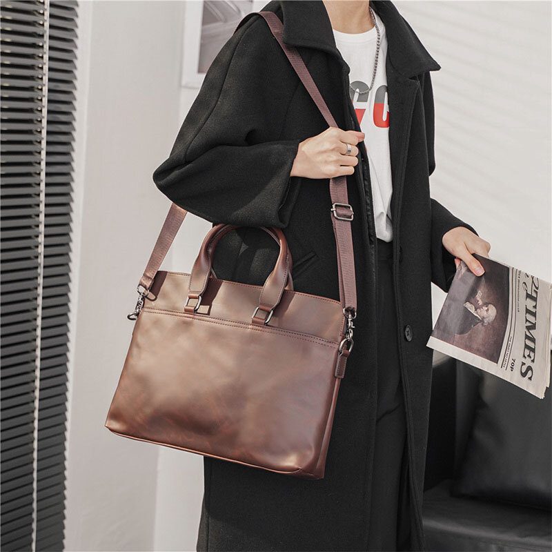 Menn Vintage Kunstskinn Multi-bære Stor Kapasitet Ensfarget Koffert Håndvesker Business Crossbody Bag