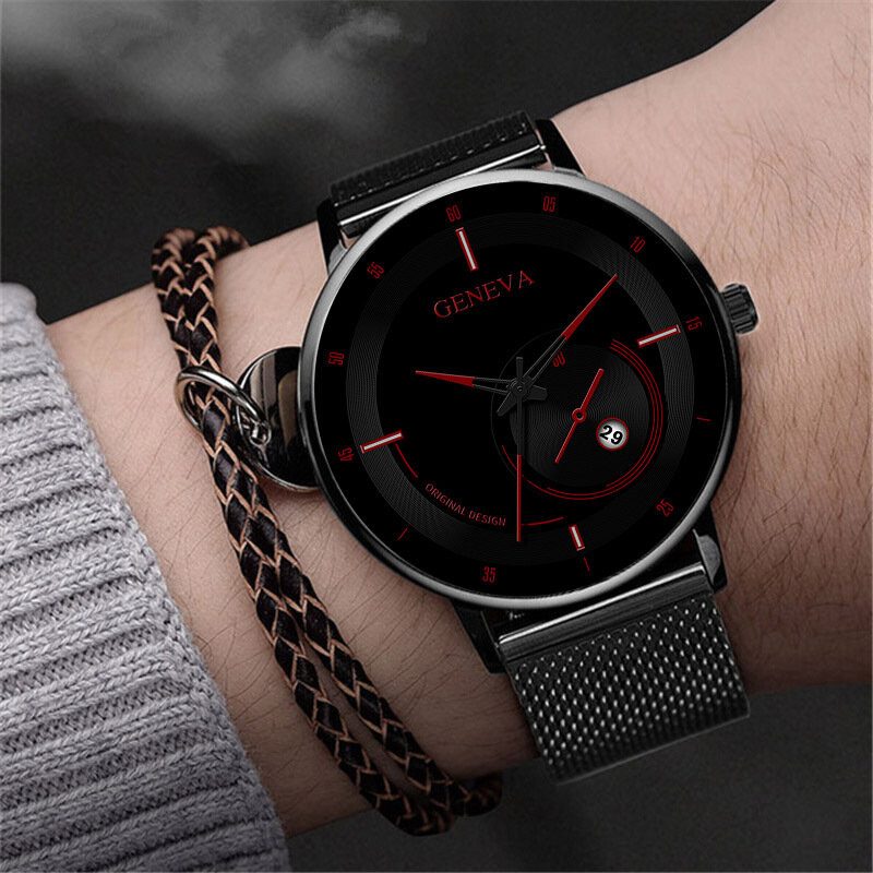 Mote Casual Legering Stål Business Casual Mesh Beltekalender Mann Kvartsklokke