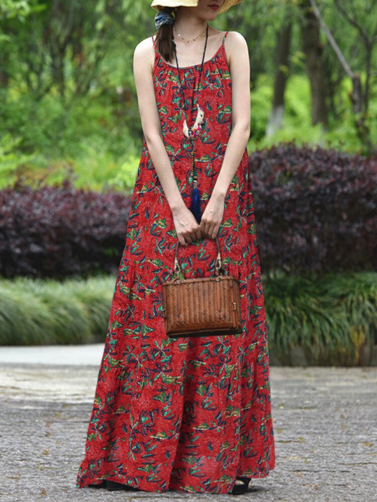 O-hals Blomstertrykt Løs Sommer Bohemian Dress For Women