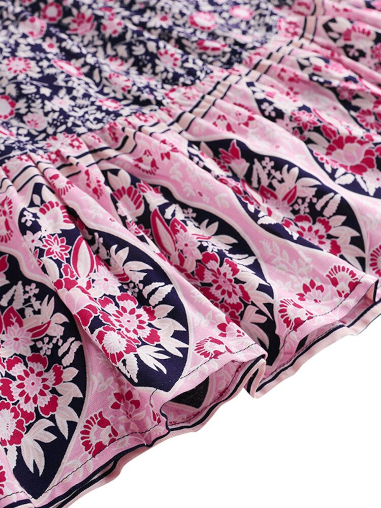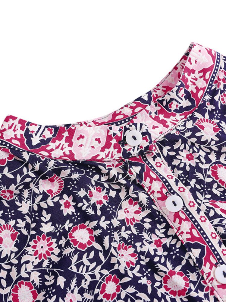 Puffermer For Kvinner Med Blomstertrykt Snøringknapper Uformelle Midi-kjoler