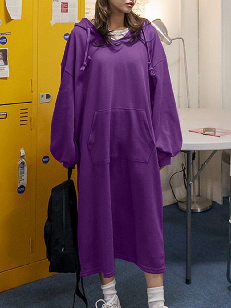 Puffermer Løs Genser Med Hette Legglengde Uformelle Midi-kjoler