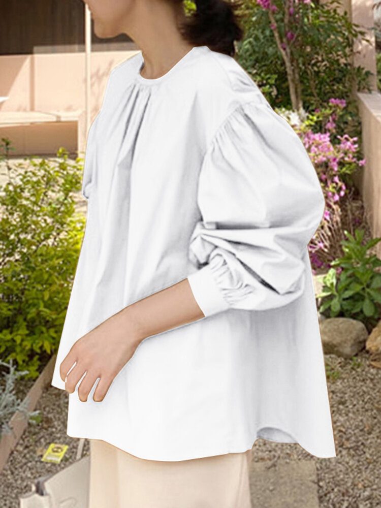 Puffermet For Kvinner Ensfarget Bohemian O-hals Uformell Løs Bluse