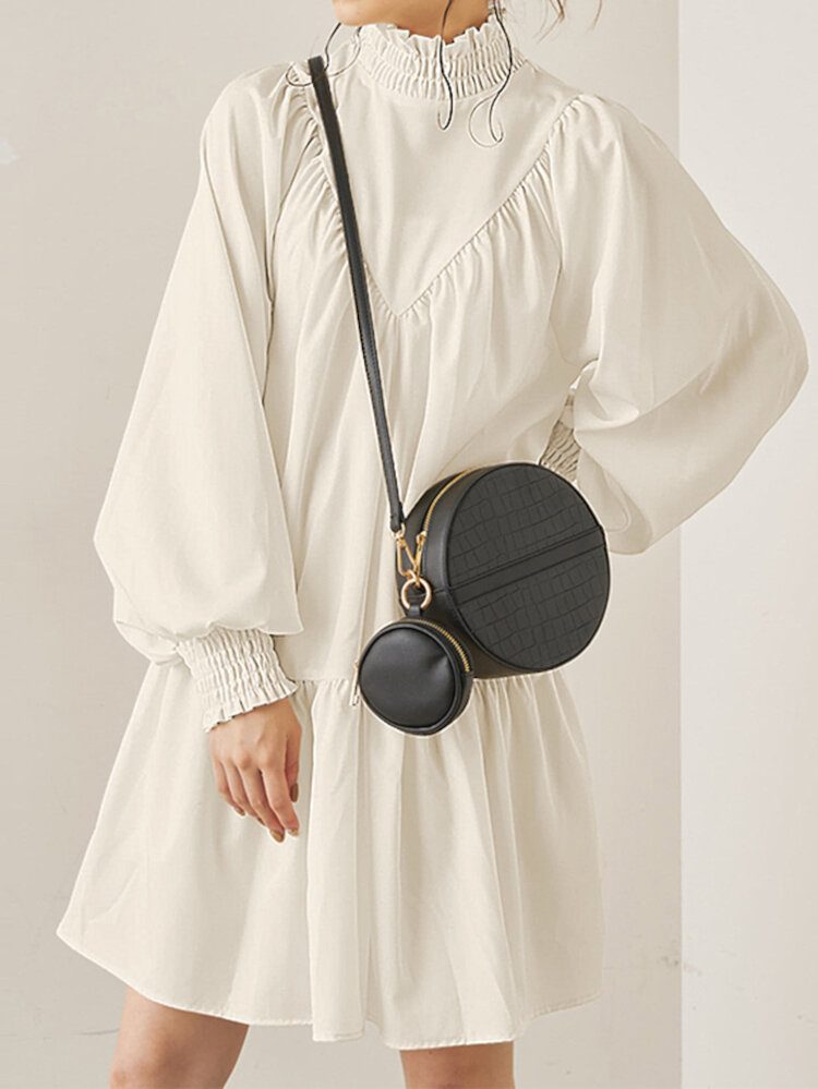 Puffermet For Kvinner Smockdesign Solid Knelange Midikjoler