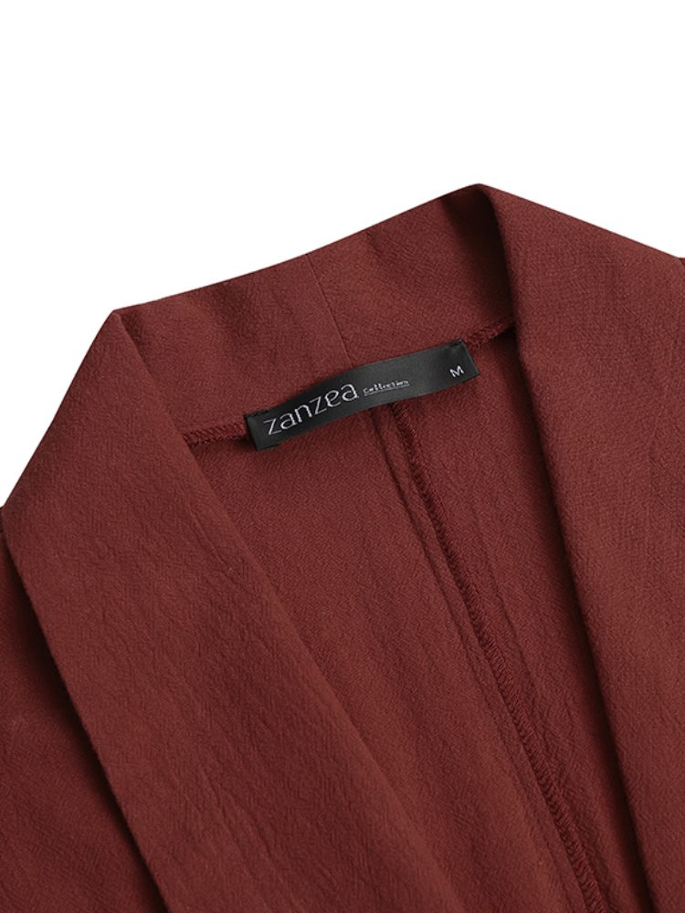 Ren Bomull Løs Litterær Enkel Cardigan For Kvinner