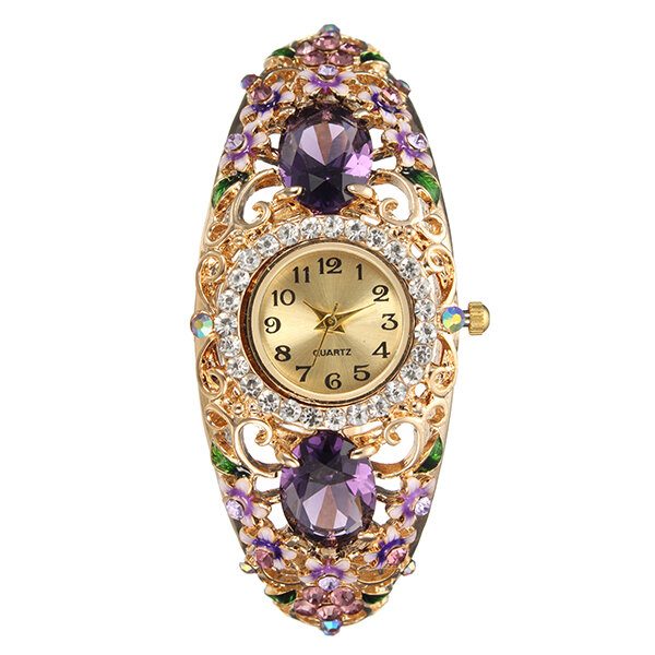 Retro Style Dame Armbånd Klokke Blomst Diamant Kvarts Klokke