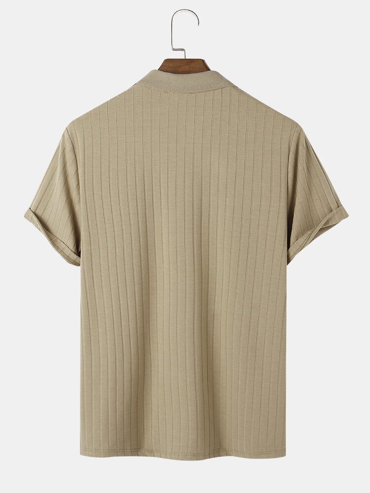 Ribbet Tekstur For Menn Ensfarget Kortermet Fritidsgolfskjorte