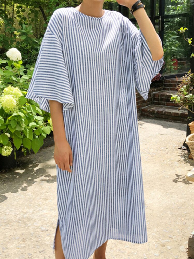 Sidegaffel Puffermer Stripet Løs Kjole For Dame