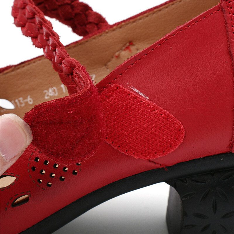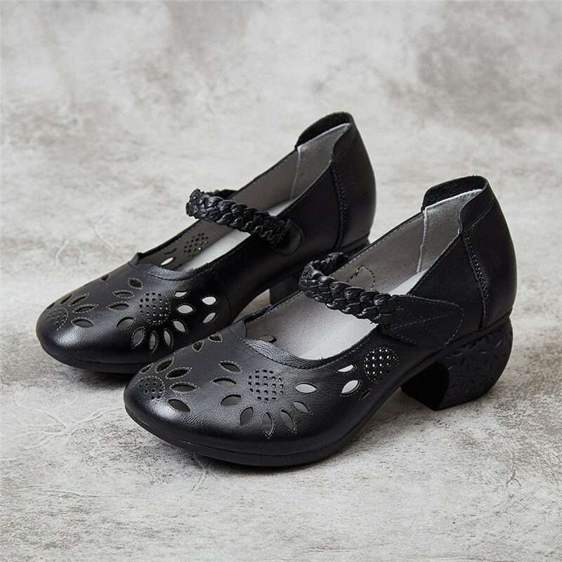 Skinnutskjæring Blomsterflettet Justerbar Ankelstropp Chunky Heel D'orsay Pumps