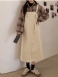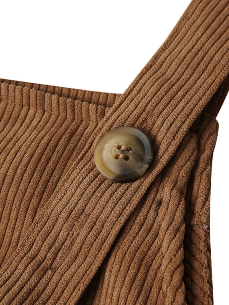 Solid Justerbar Skulderstropp Forlomme Kordfløyelknapper Ermeløse Midikjoler