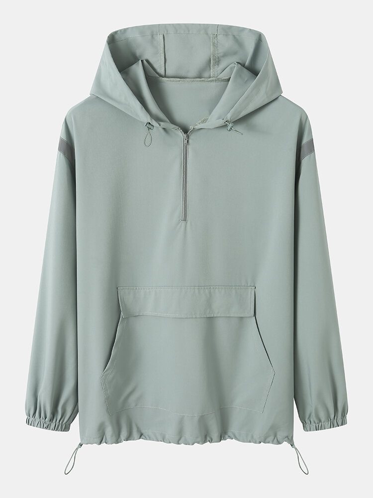 Solid Kengurulomme Foran Med Glidelås Street Hette Og Snøring Langermet Lastedress