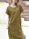 Solid Kortermet Midi Casual Kjole Med Rund Hals