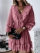 Solid Plissering Fritid Langermet Casual Dress For Dame