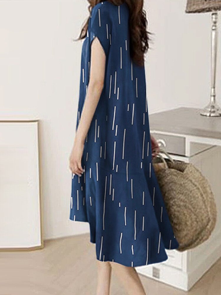 Stripete Trykk Ruffled V-hals Kortermet Midi-kjole